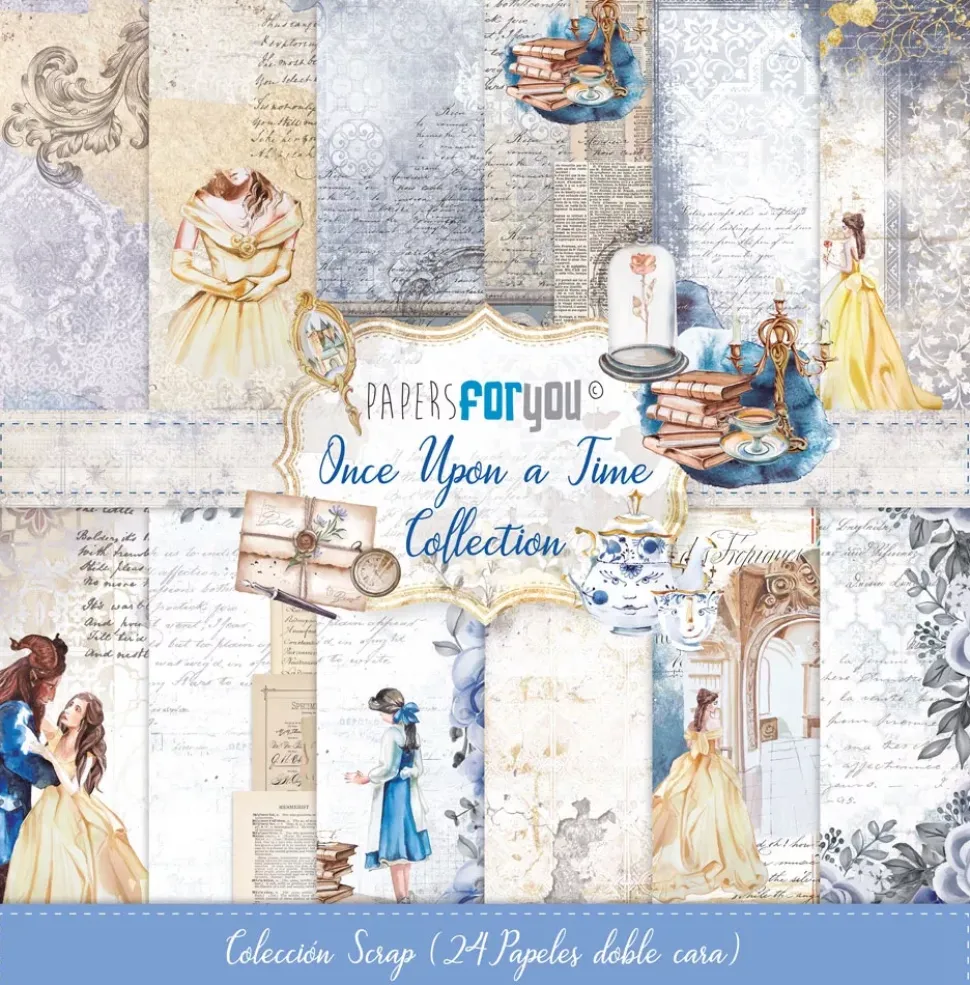 Descubre la nueva colección de PapersForYou, Once Upon a Time, una colección de cuento de hadas. Inspirada en la famosa historia de La Bella y la Bestia, presenta ilustraciones que te invitarán a adentrarte y crear con esta bonita colección de scrapbooking, con una joven como protagonista de ella. Puedes encontrar nuevos patrones de escritos antiguos, filigranas, motivos florales y mucho más. Una colección perfecta para hacer magia con tus proyectos de scrapbooking. ¡No te la pierdas!