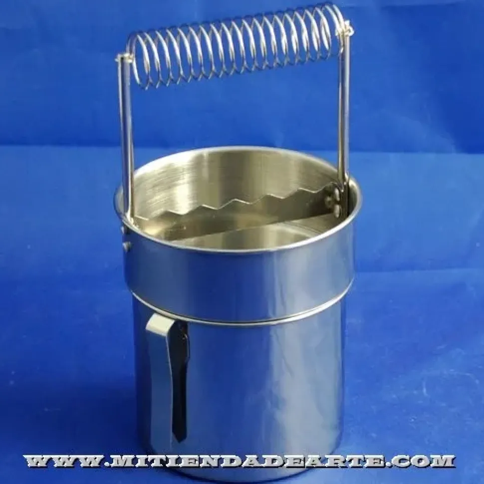 – Limpia pinceles metálico de acero inoxidable de dos piezas con muelle para fijar los pinceles sin dañarlos. – 10 cm de diámetro y 20 cm de altura.