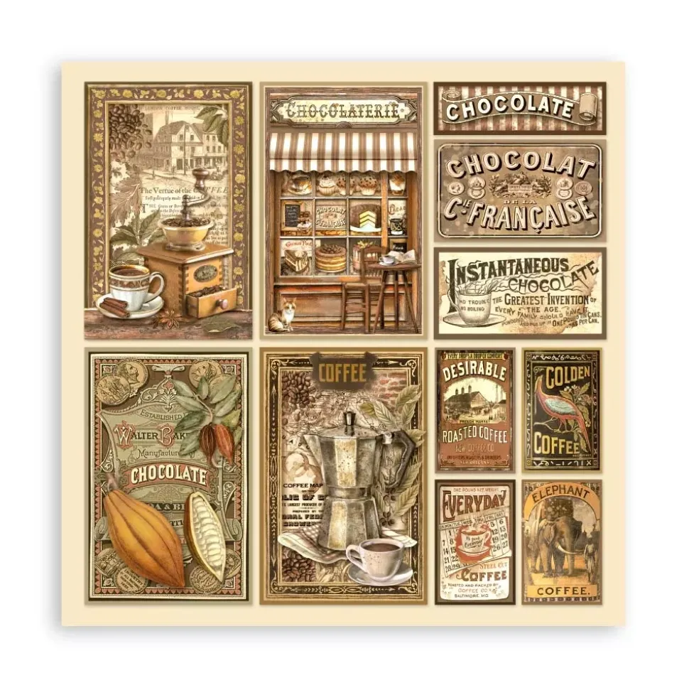 Prepárate para derretirte con la nueva colección Coffe & Chocolate de Stamperia. Crearás proyectos de ensueño con las ilustraciones y colores que contiene sobre cafeteras, onzas de chocolate, granos de café y muchos más elementos en una gama completa de tonos marrones. Descubre ya la mezcla perfecta entre tradición y dulzura, ¡no te quedes sin ella!