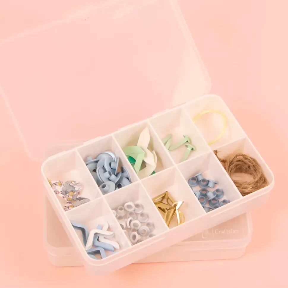 - Se acabó perder adornos o piezas pequeñas. O tener las lentejuelas desperdigadas. Con esta caja con 10 compartimentos tendrás todo organizado y a la vista para encontrar lo que necesitas rápidamente.