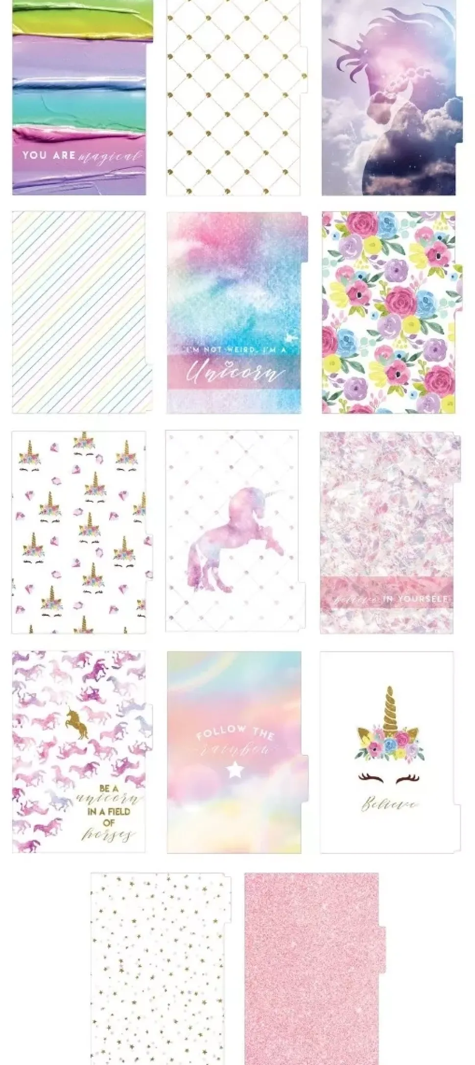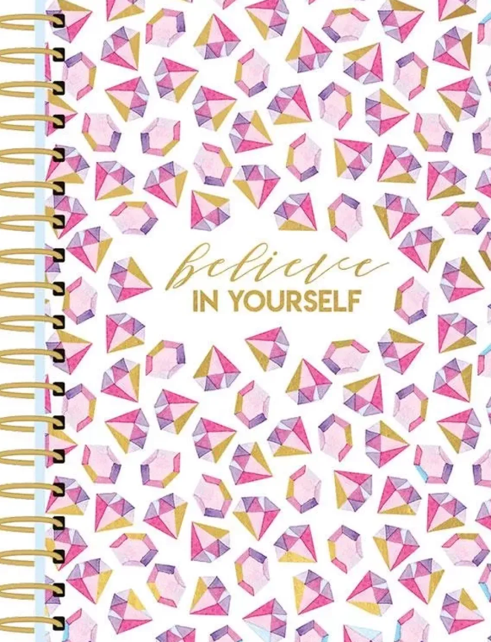 - Planner de anillas con cubiertas de cartón plastificadas con estampado de diamantes con la frase believe in yourself.