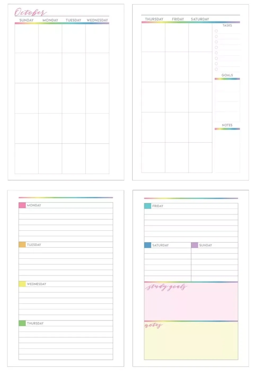 - · Visión general del mes: at a glance, goals, important dates y lista de to do