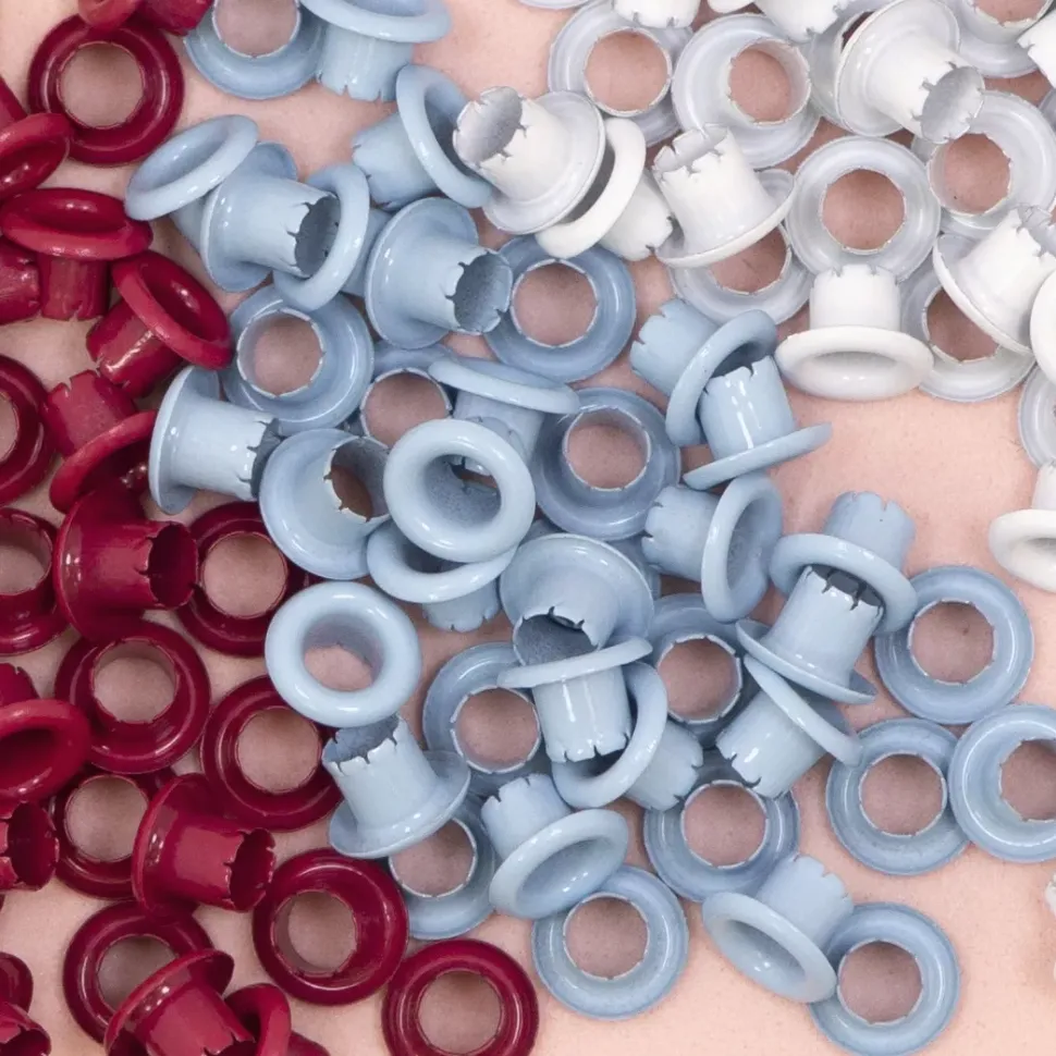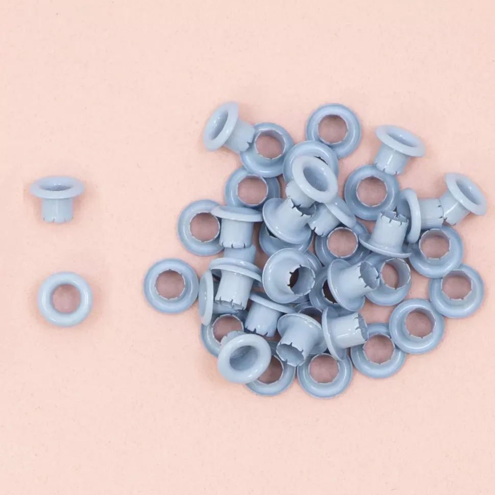 - Pack con 40 ojales color azul bebé.