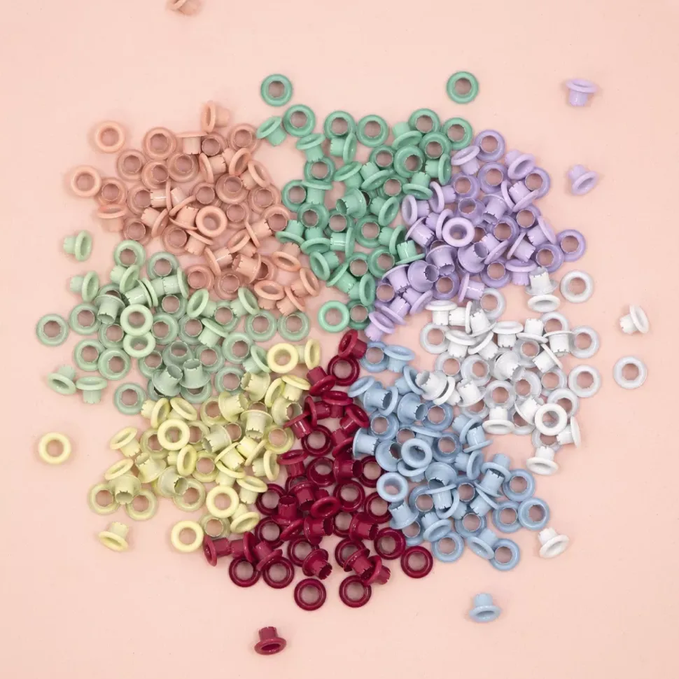 - Además estos ojales o eyelets puedes utilizarlos con diversos materiales, desde Goma EVA o fieltro a tags y hasta tapas de álbumes de scrapbooking.
