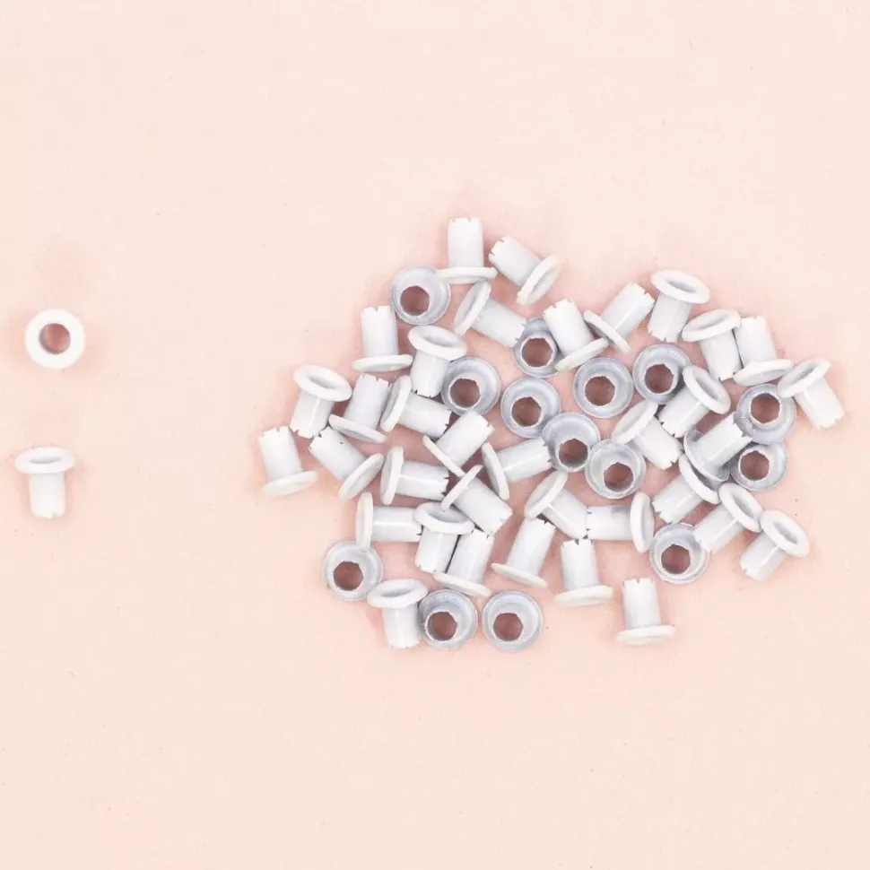 - Además estos ojales o eyelets puedes utilizarlos con diversos materiales, desde Goma EVA o fieltro a tags y hasta tapas de álbumes de scrapbooking.