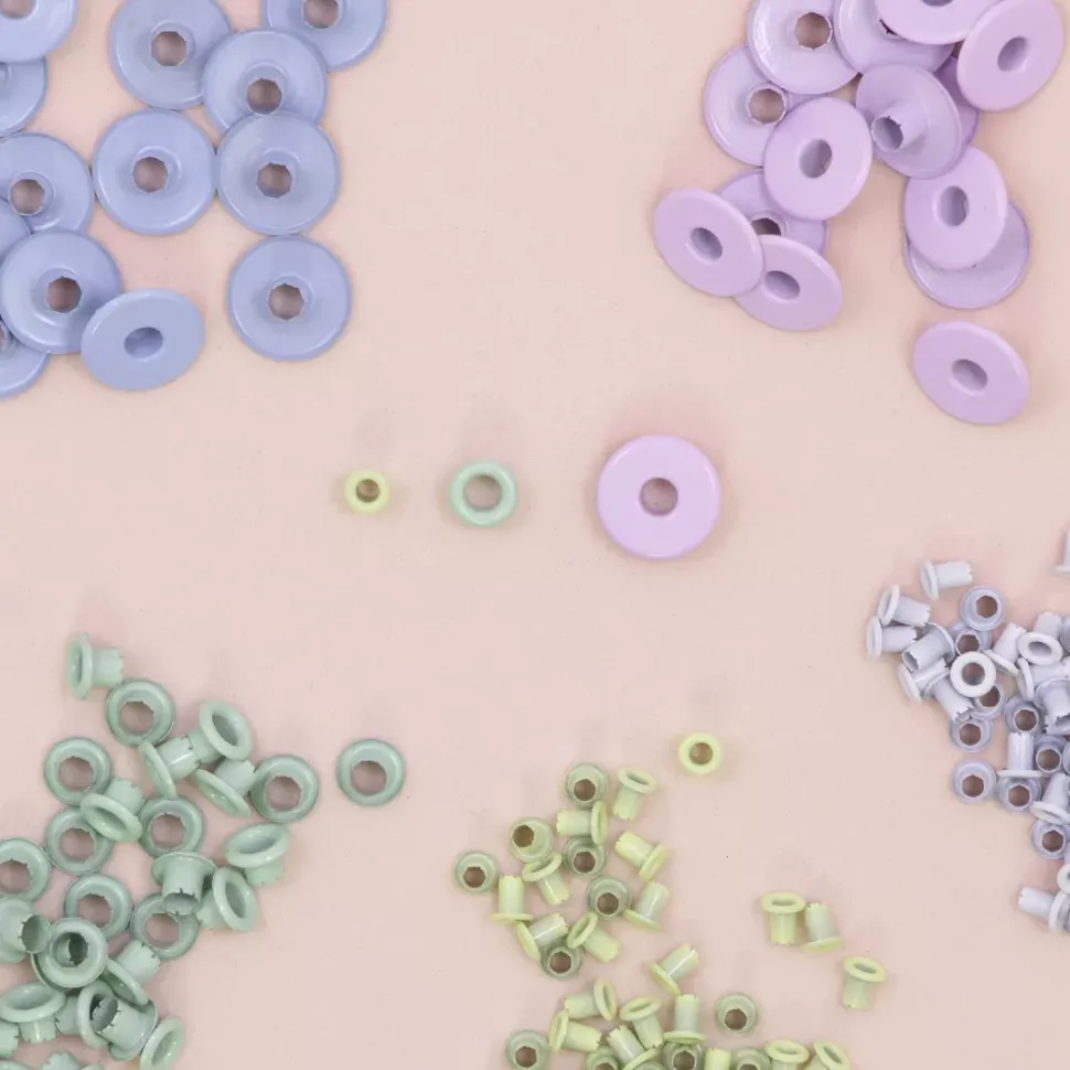- Además estos ojales o eyelets puedes utilizarlos con diversos materiales, desde Goma EVA o fieltro a tags y hasta tapas de álbumes de scrapbooking.
