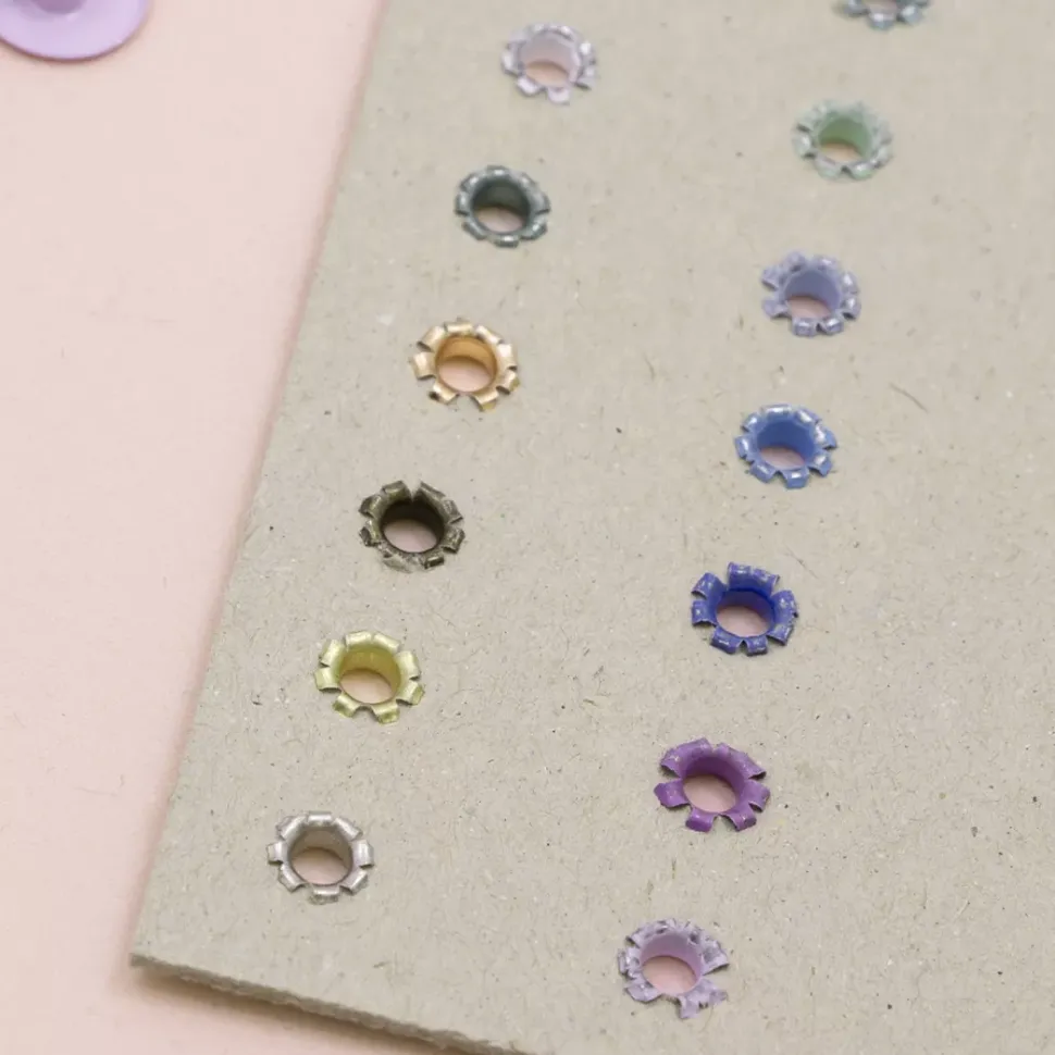 - Además estos ojales o eyelets puedes utilizarlos con diversos materiales, desde Goma EVA o fieltro a tags y hasta tapas de álbumes de scrapbooking.
