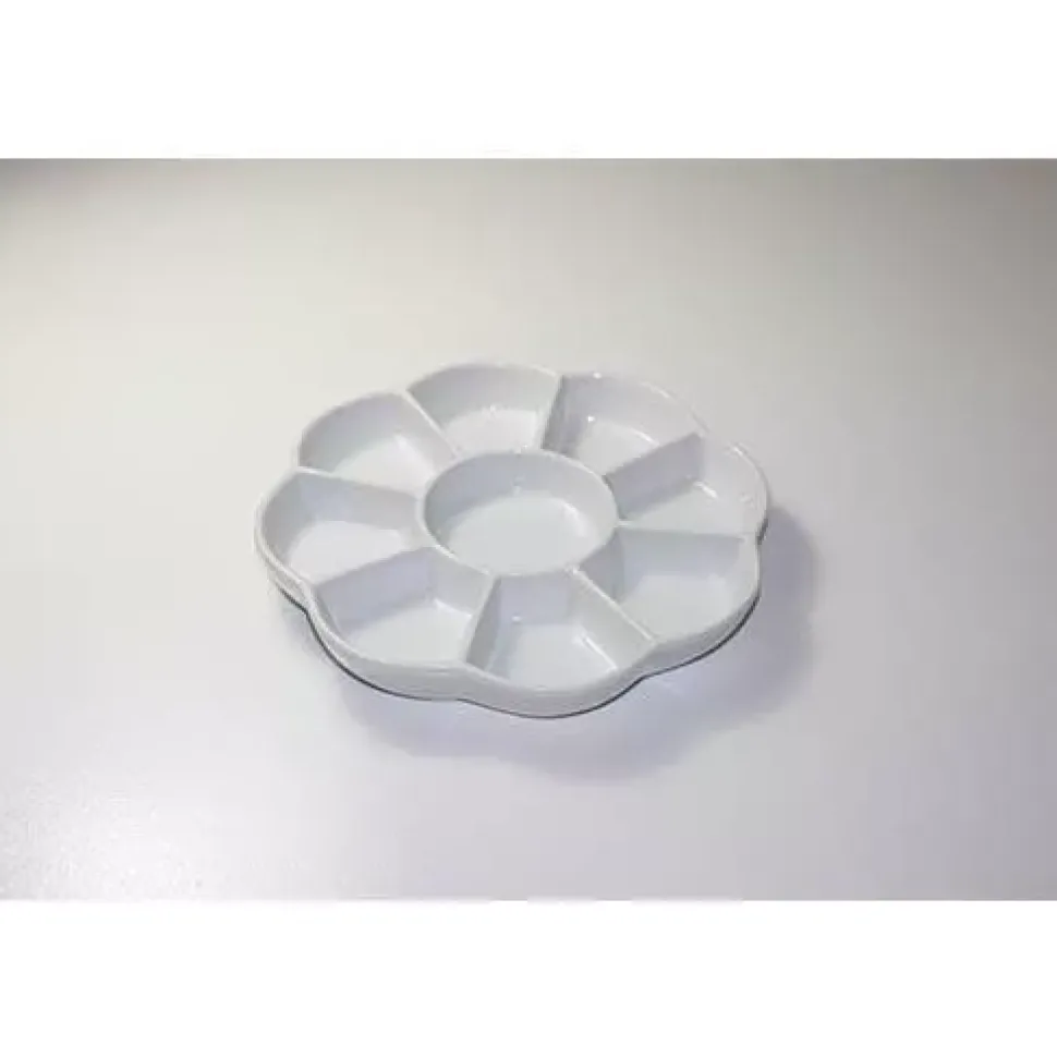 Paleta de cerámica esmaltada con 8 pocillos de colores y un pocillo para mezclar.