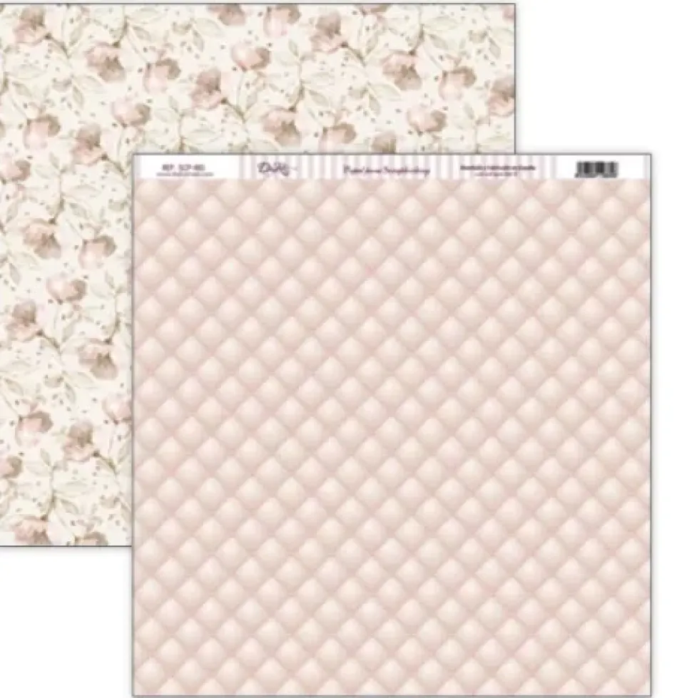 - – Papel estampado con un patrón de cuadros en tonos rosa. Por la cara posterior encontramos un estampado de flores rosas sobre un fondo beige.
