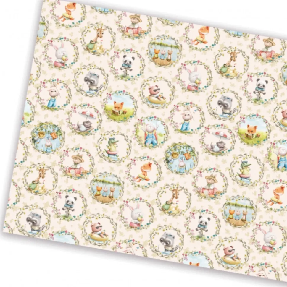 - Estampado con distintas ilustraciones de animalitos haciendo actividades veraniegas.