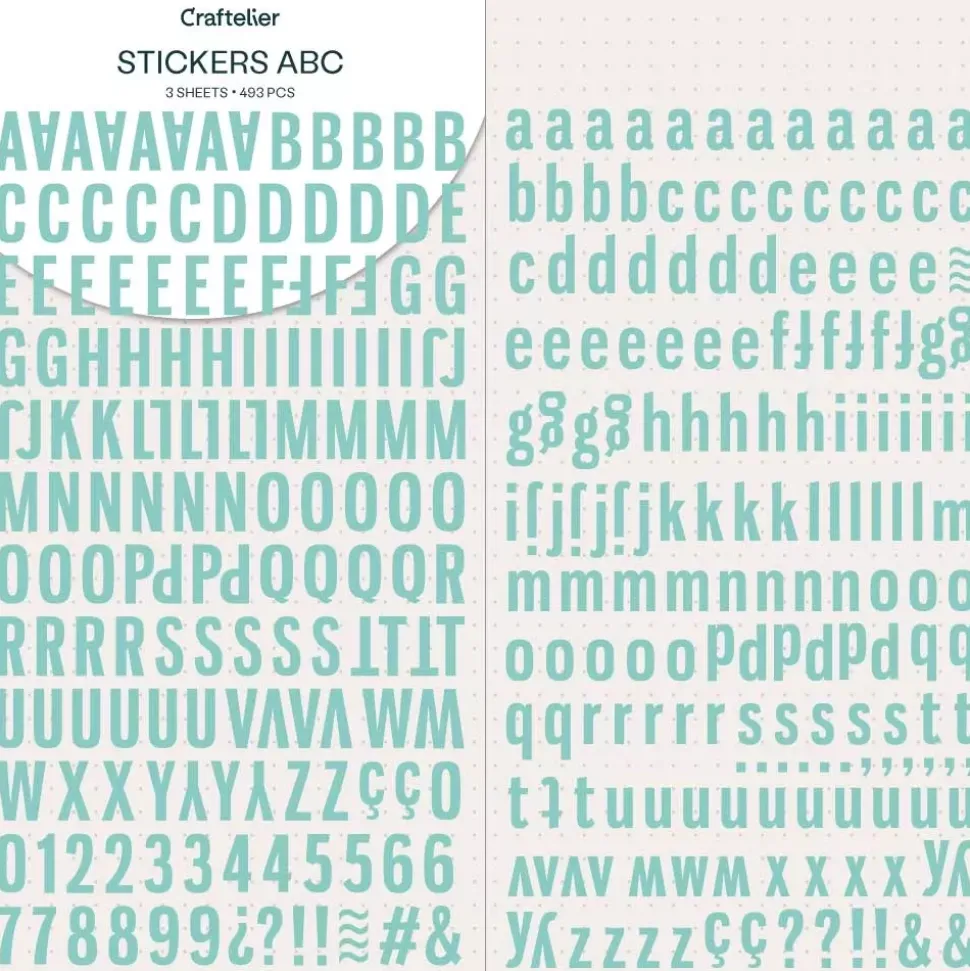 - Abecedarios con superficie autoadeshiva en color turquesa.