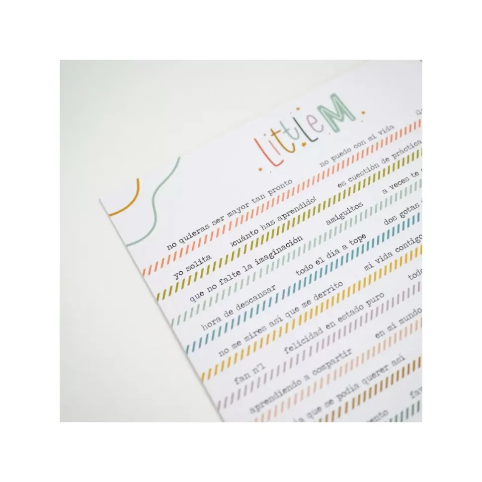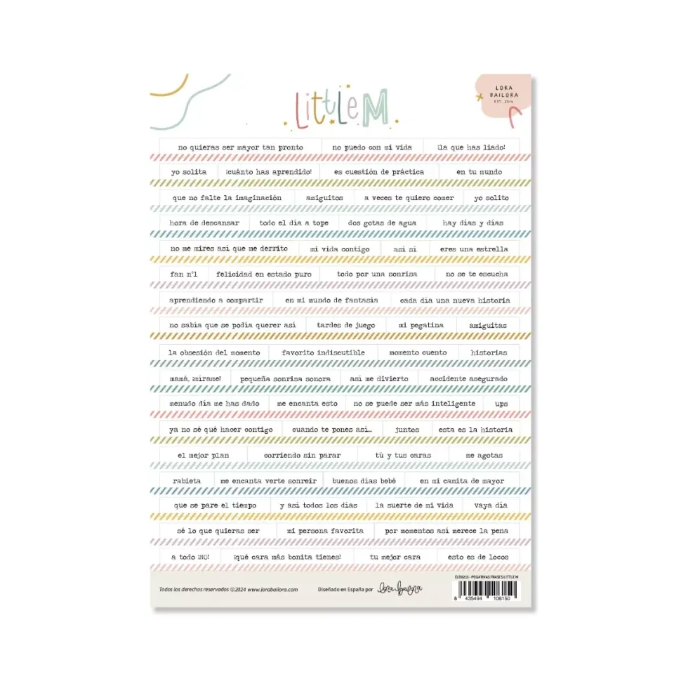 Baby M se hace mayor y Lora Bailora nos presenta Little M, su nueva colección. Dejamos atrás los motivos de bebés para dar paso a divertidas ilustraciones de un mundo de juegos, en el que Little M descubre, juega, experimenta y sigue creciendo. Little M es una colección perfecta para atesorar todos los recuerdos de los pequeños de la casa, con una preciosa paleta de colores suaves y diseños de planetas, dinosaurios, juguetes, estrellas, patinetes… Además, cuenta con todo tipo de complementos, desde puffy stickers hasta los populares troqueles de la marca. Descubre ya Little M, ¡te enamorará!