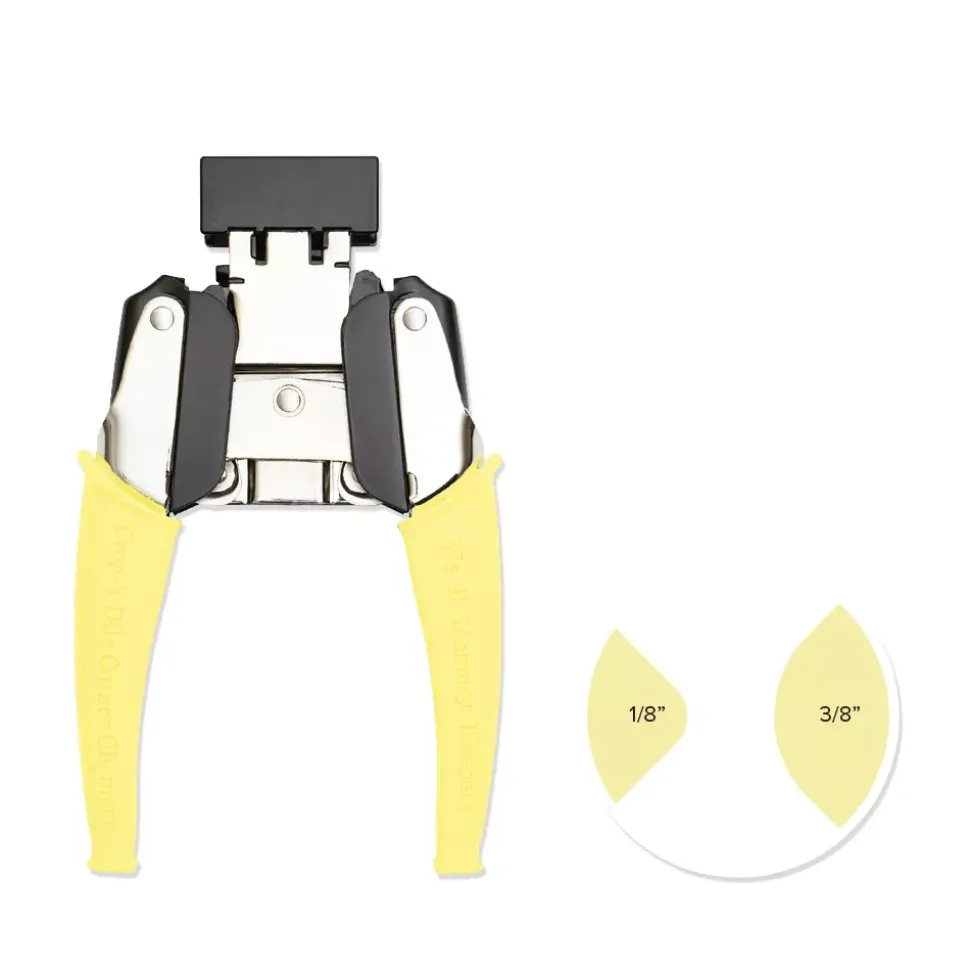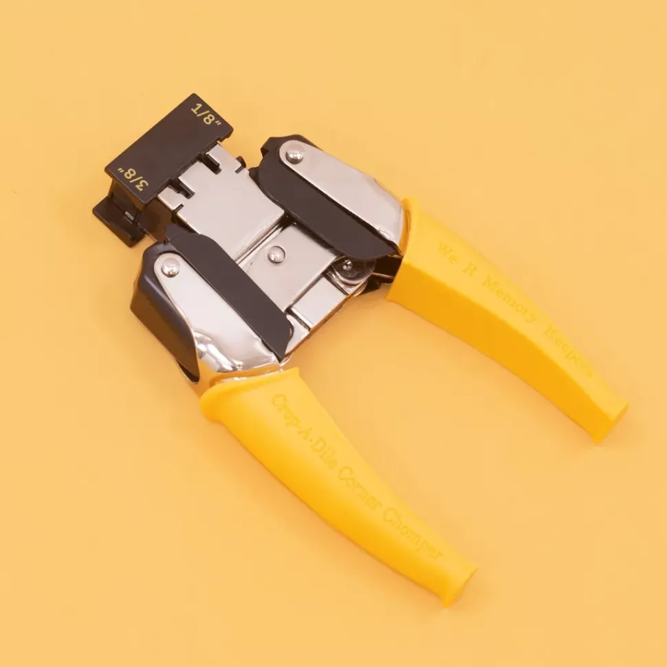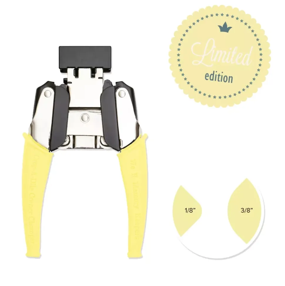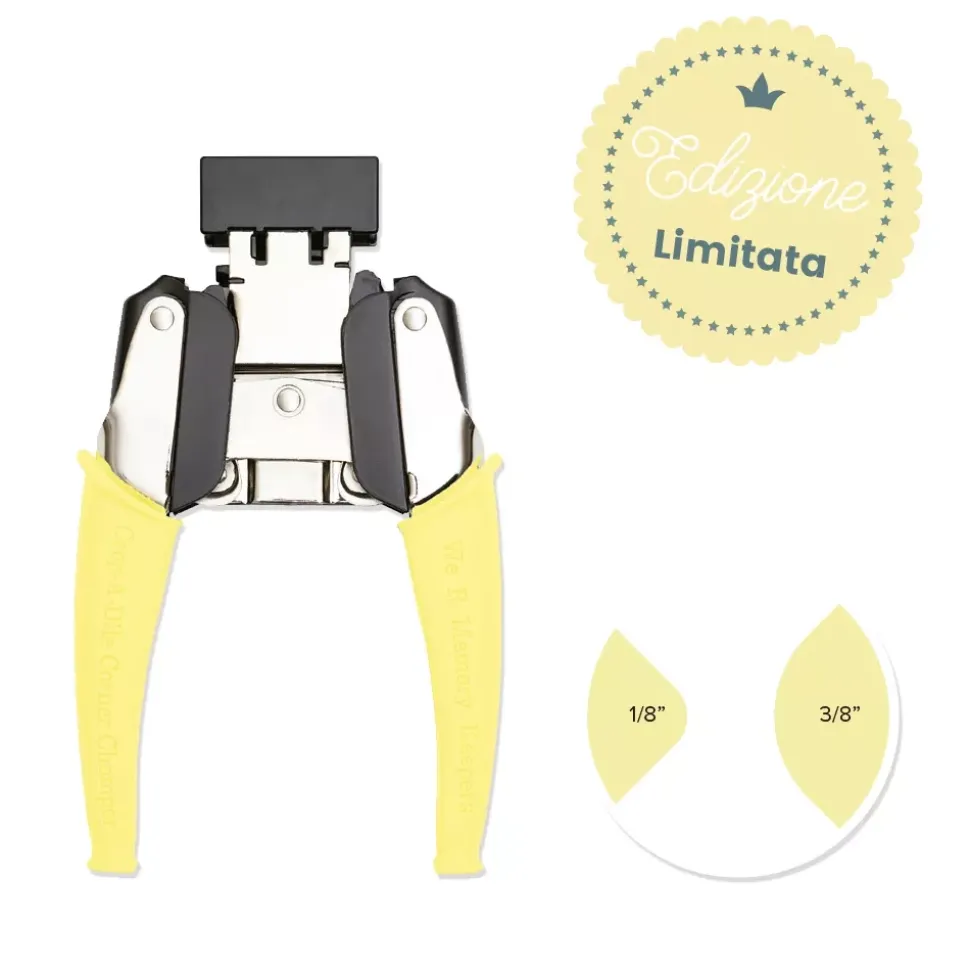 Los diseños de este modelo amarillo son redondeados, el corte más sencillo y clásico. Este corte es genial para darle un toque diferente a las páginas de tu álbumes, para crear tarjetas de Project Life o para decorar tus fotografías más especiales. Las dos esquinas son muy diferentes, el corte de 1/8” es pequeño y sutil mientras que el de 3/8” es mucho más amplio y redondeado.