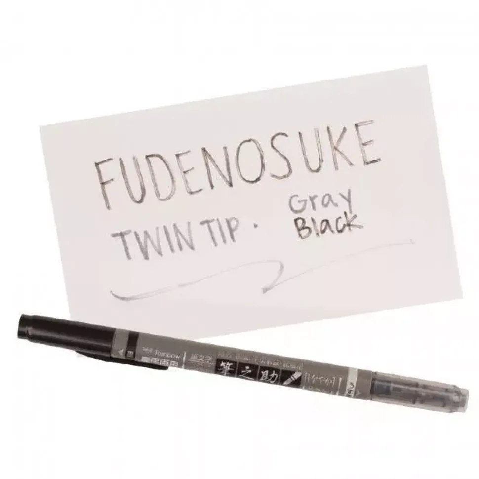 Rotulador Fudenosuke Doble punta gris y negro Tombow