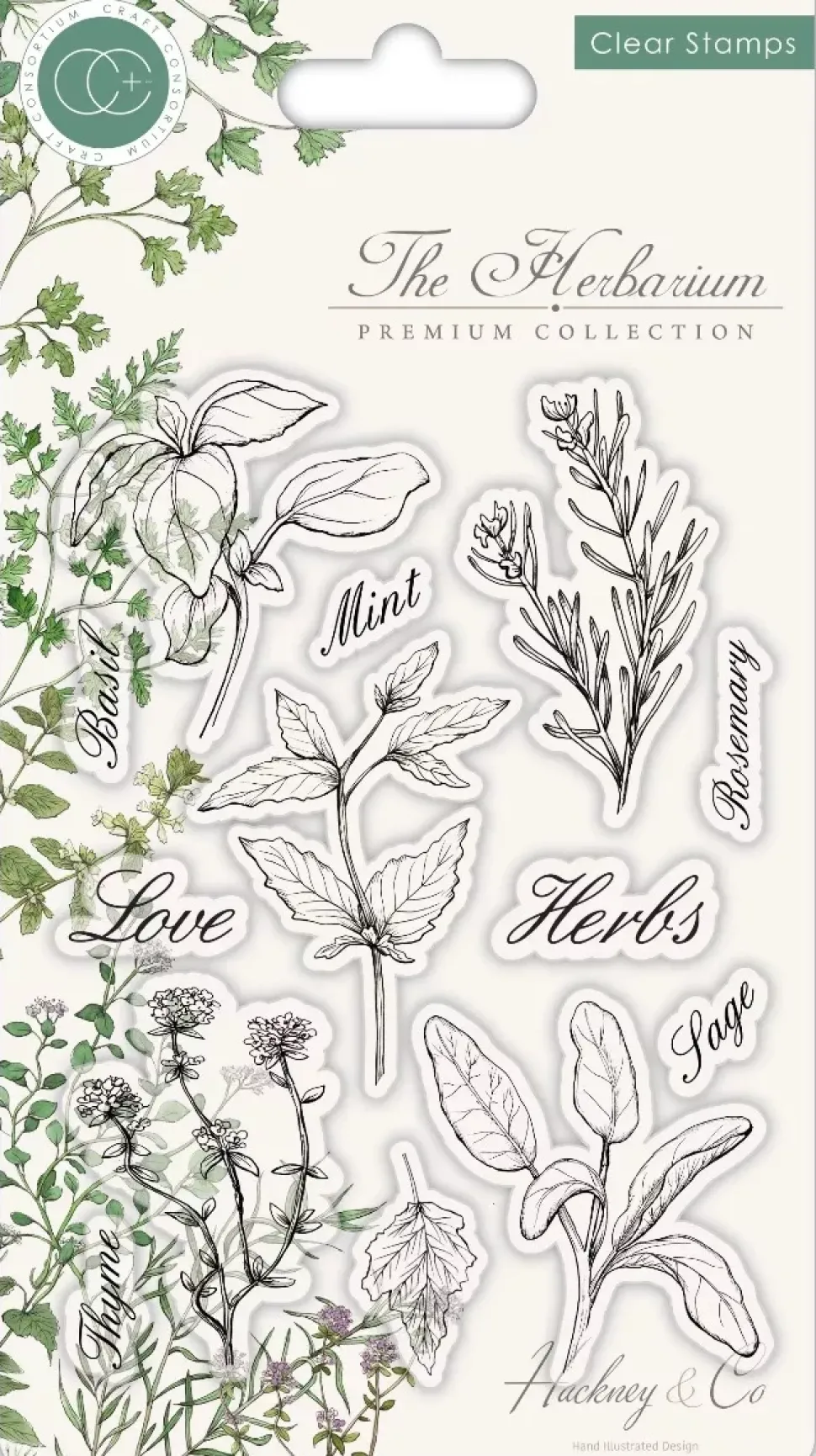 - Conjunto de 13 sellos con ramas y flores y palabras como mint, love, herbs, sage, rosemary.