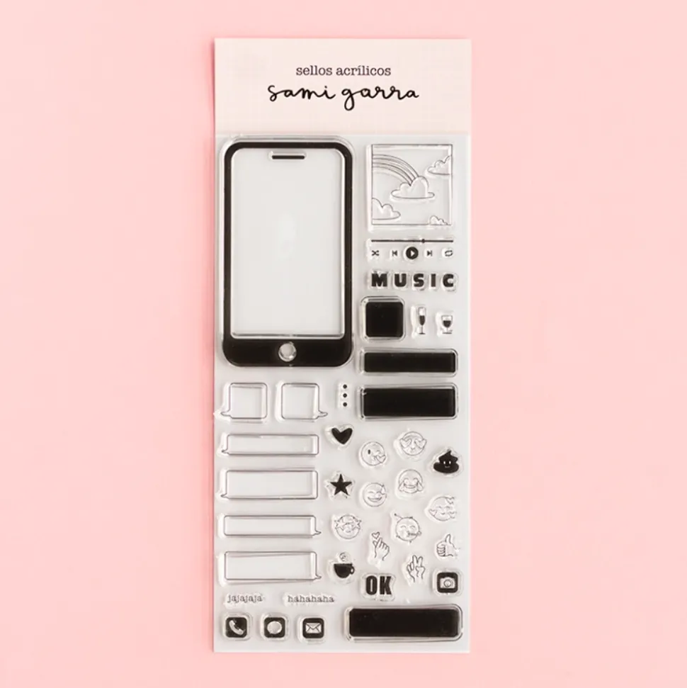 - Sellos reposicionables para colocar en tu base de metacrilato y estampar con tus tintas favoritas.