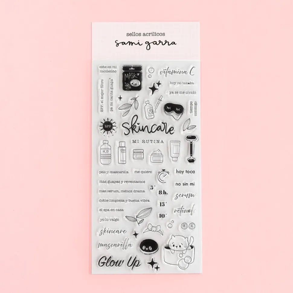 - Sellos reposicionables para colocar en tu base de metacrilato y estampar con tus tintas favoritas.