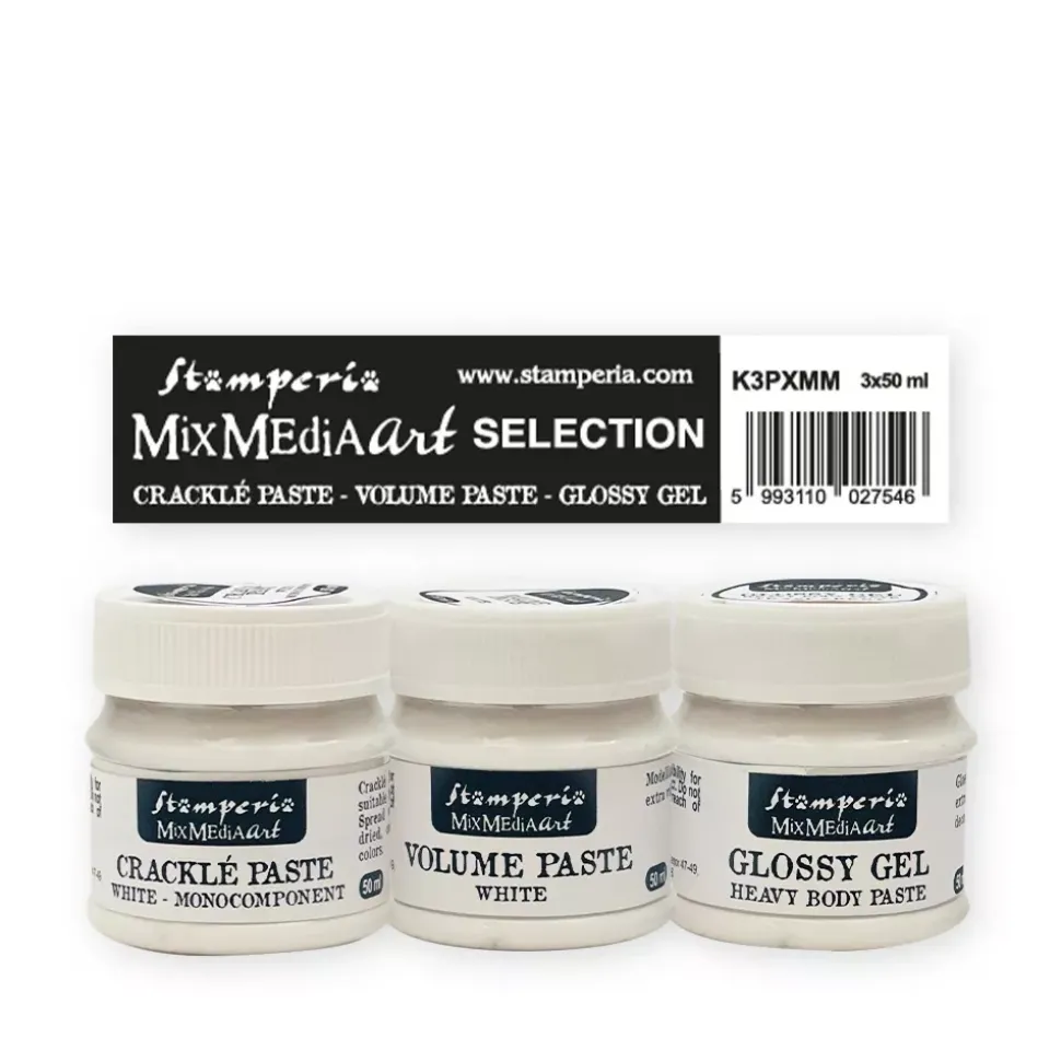 - Selección de 3 tipos de pastas de textura diferentes para proyectos Mixed Media.