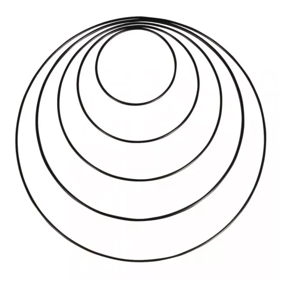 - 5 anillos de metal de color negro en diferentes diámetros.