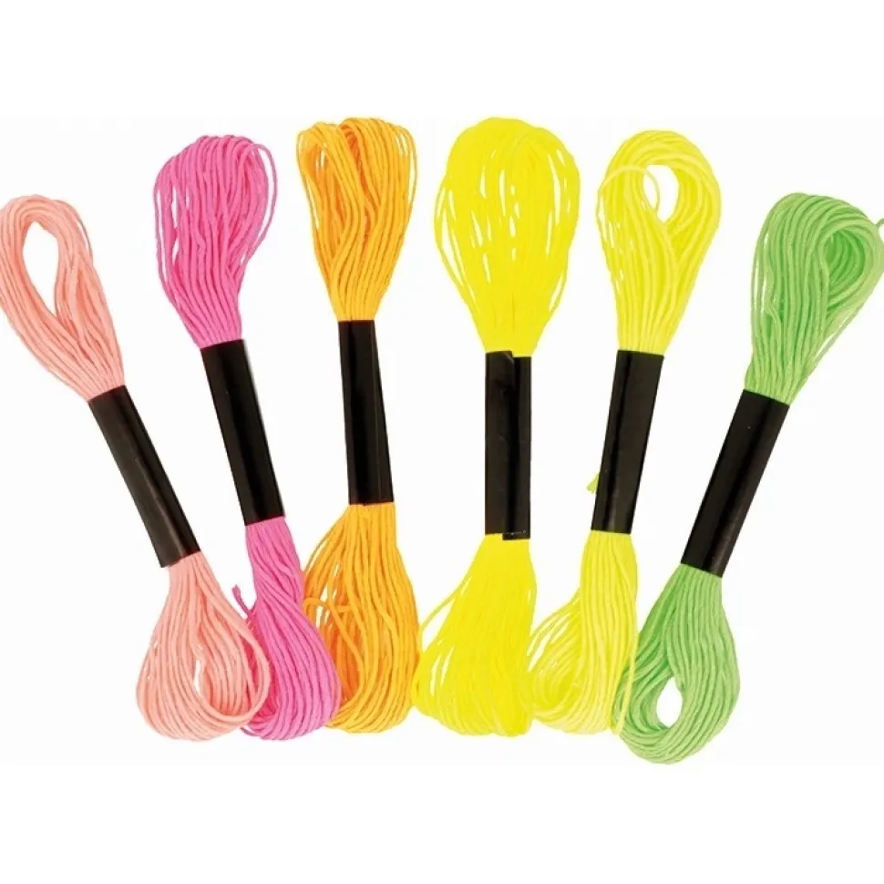 - El juego de hilos Artemio flúor contiene 6 hilos de algodón fluorescentes.