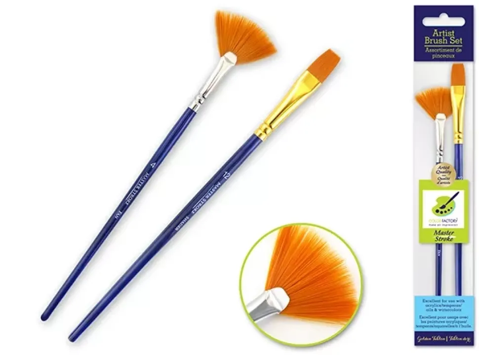 - El set incluye 1 pincel punta abanico y 1 pincel punta plana.