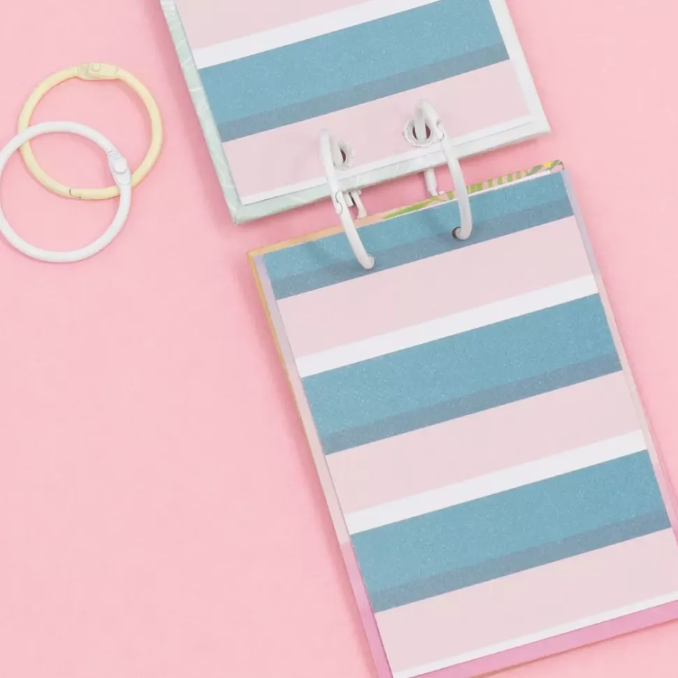No hay nada más sencillo y efectivo que una encuadernación con una o dos anillas. Puedes realizar álbumes de cualquier forma y tamaño e incluir páginas a posteriori fácilmente. Mini álbumes, álbumes en forma de tag, con formato circular, en forma de banderín…