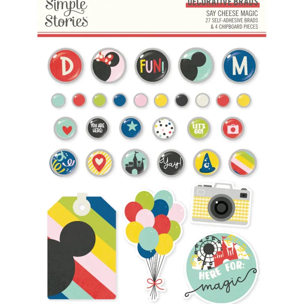 Set de Brads Adhesivos y Tags Say Cheese Magic Simple Stories