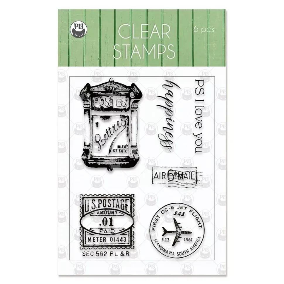 - Incluye 6 sellos con ilustraciones de buzón, matasellos, sello y la palabras happiness, PS I love you