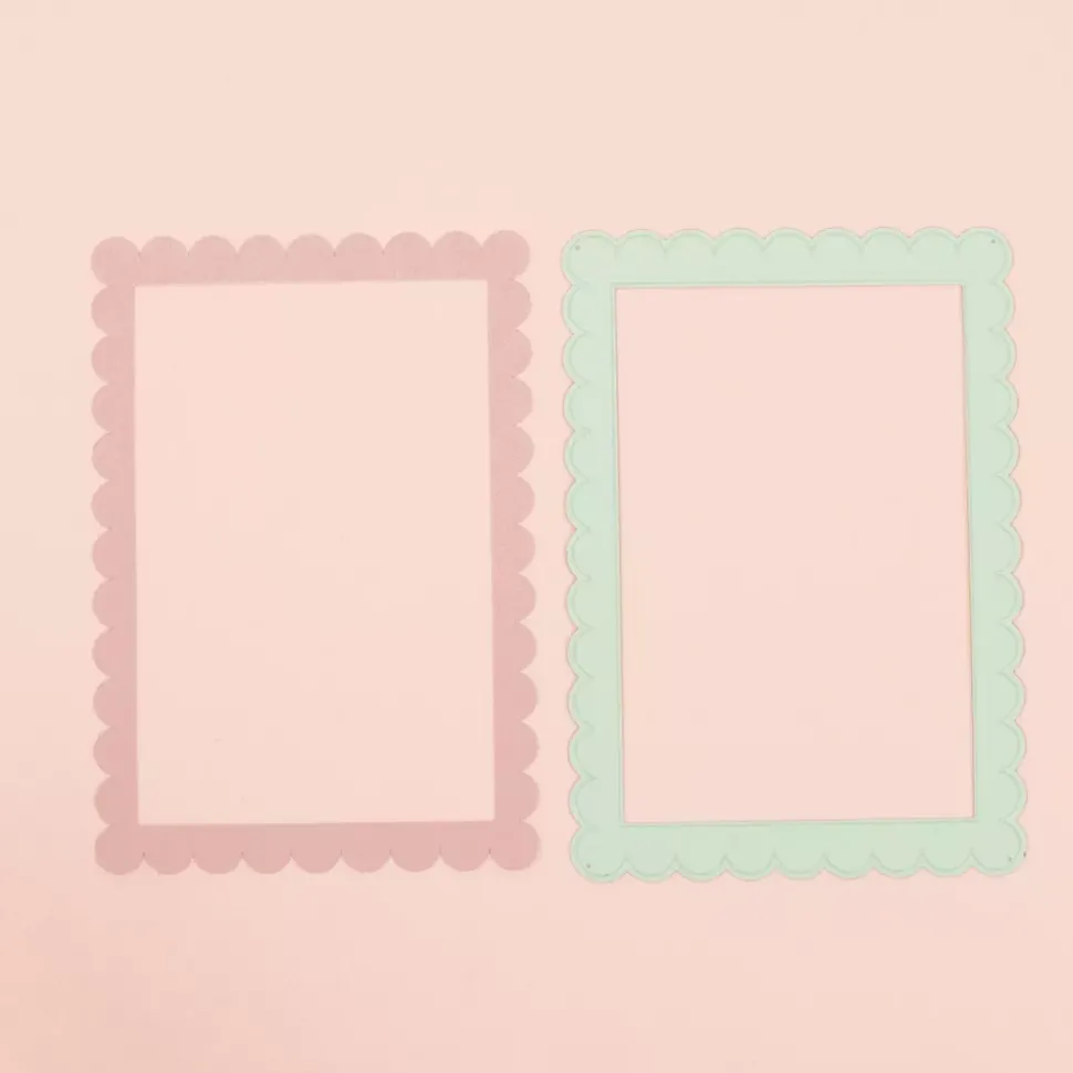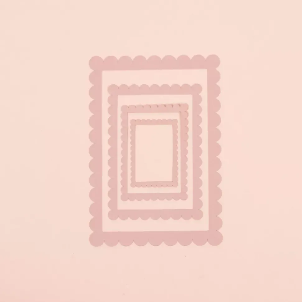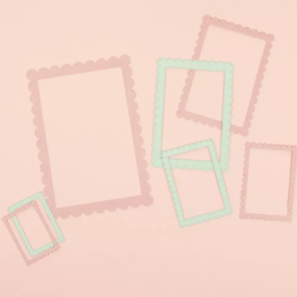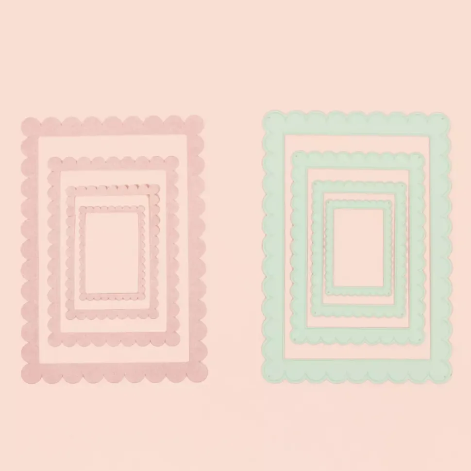 - Troqueles para realizar 4 marcos con bordes festoneados de tamaños diferentes.