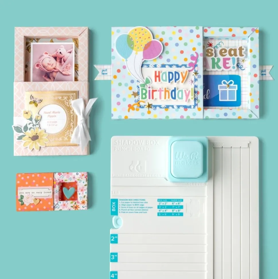 ¡Una nueva Punch Board se suma a la familia! Con la nueva Shadow Box podrás hacer cajas con profundidad, similares a los marcos, en los que podrás poner objetos tridimensionales.
