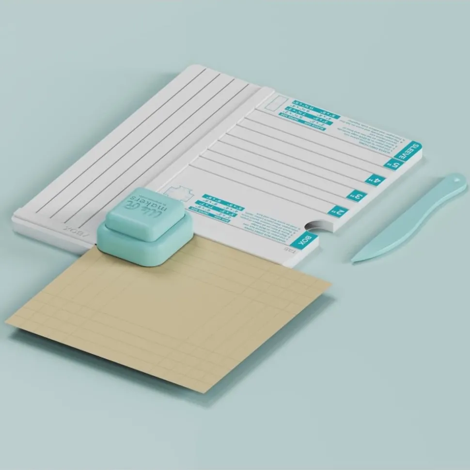 Sencilla y fácil de usar. Solo tendrás que seguir la guía para hacer las marcas para doblar y las perforaciones de las esquinas.