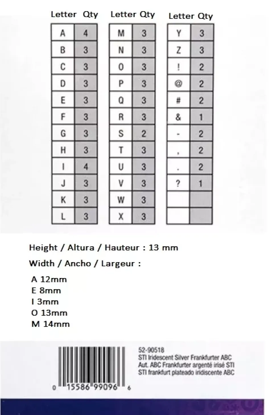 - Este set incluye un surtido de letras mayúsculas así como números y símbolos.