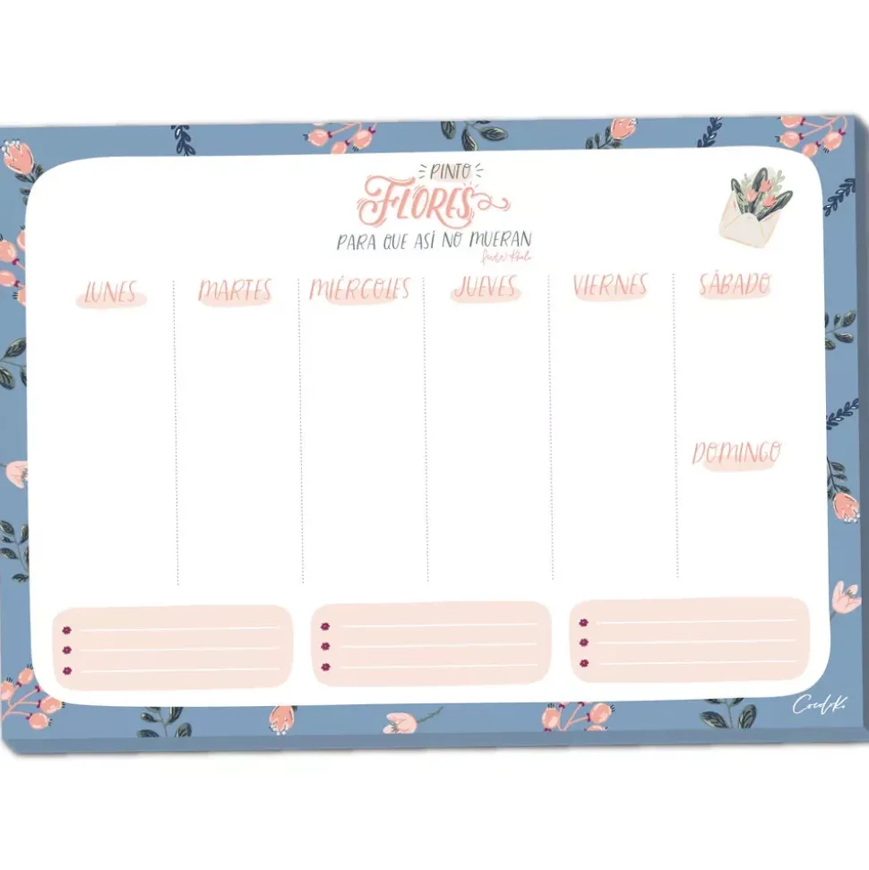 - Dispone de un organizador semanal y espacio en la parte inferior para notas.