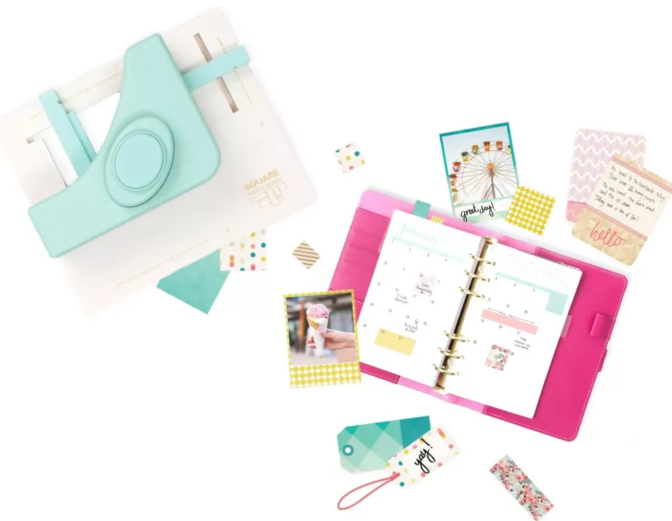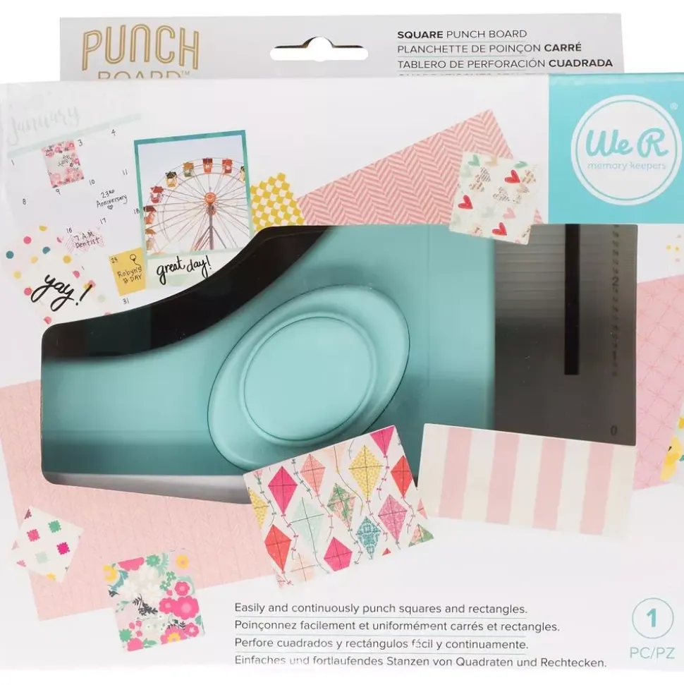 Con esta perforadora podrás realizar cuadrados o rectángulos desde 1,9 cm. (0.75″) hasta 10,16 cm (4″). Simplmenete ajusta las guías al tamaño deseado y perfora tus papeles favoritos para crear tarjetas para Project Life, marcos, etiquetas, etc.