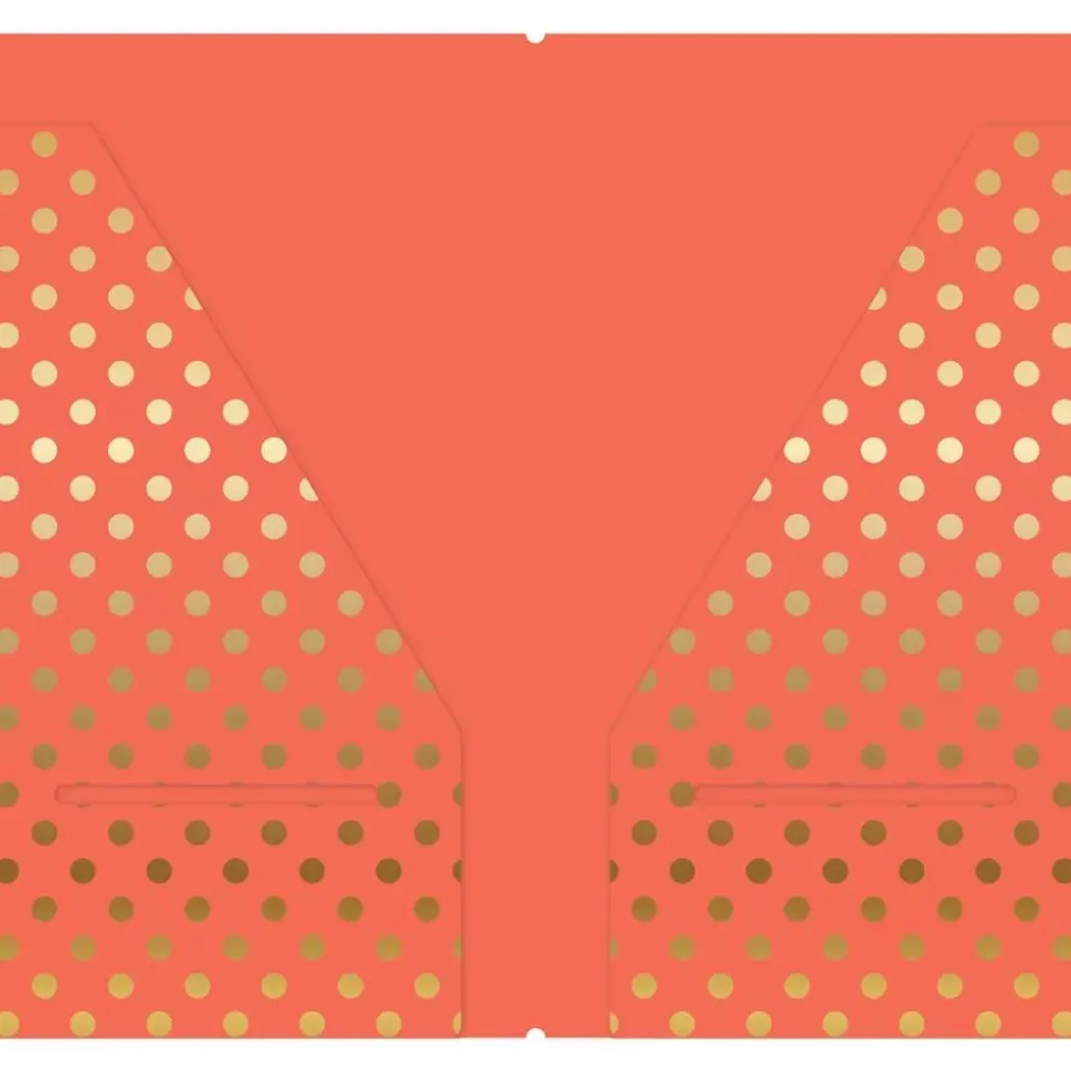 - El bolsillo es de cartulina en color melocotón con lunares en foil dorado.