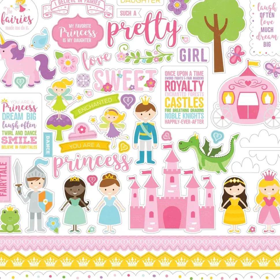 - Incluye ilustraciones de la colección como princesas, dragones, castillos, etiquetas con frases en inglés como «You are a princess», «I believe in fairies» y ¡más!