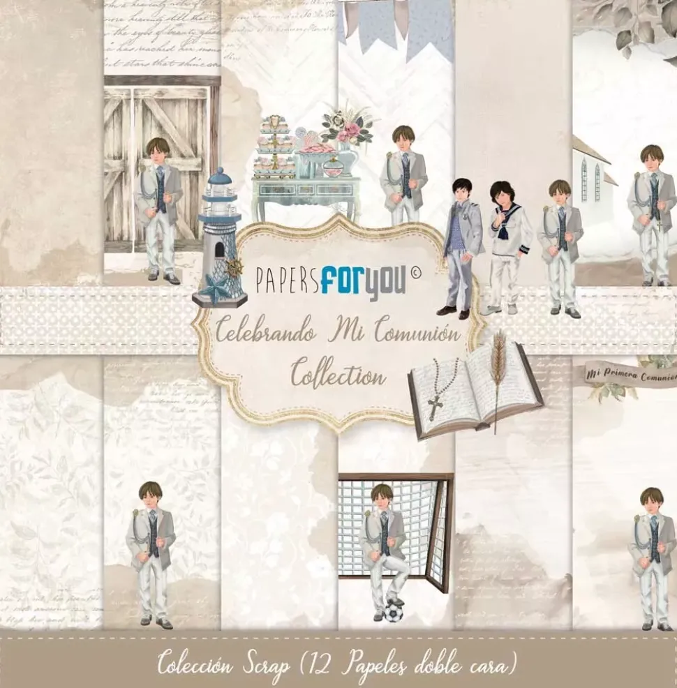 Ya está aquí la nueva colección de Papers for You para conmemorar ese momento tan especial como es hacer la comunión, «Celebrando mi comunión». La comunión es ese momento tan especial de la infancia de un niño o niña en el que reciben el sacramento de la comunión. Un dia en el que se visten como príncipes y princesas, con vestidos blancos y trajes de marinero.