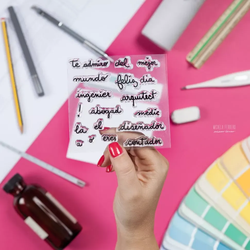 Incluye 17 sellos con palabras perfectas para acomañar tus fotografías más especiales
