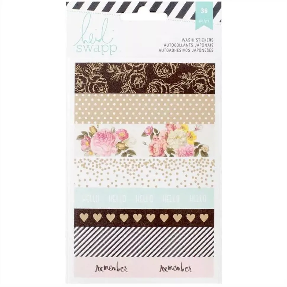Washi tape en hojas con motivos florales, dorados, carazones, triángulos…