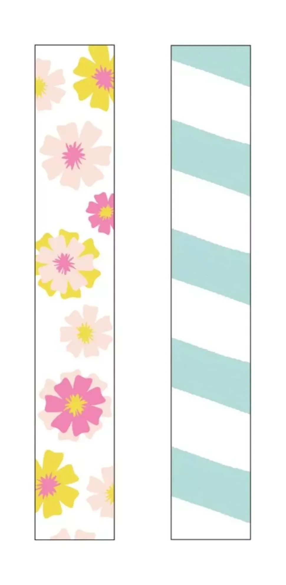 En este set se incluyen dos dispensadores diseñados por Dear Lizzy como parte de su nueva colección, Happy Place, uno con rayas oblicuas azules y blancas y el otro con flores.