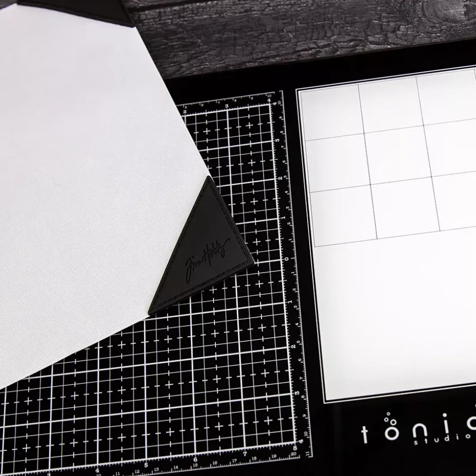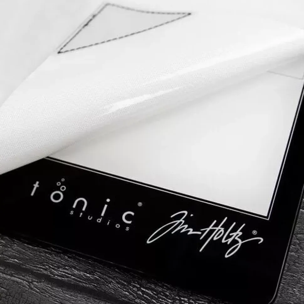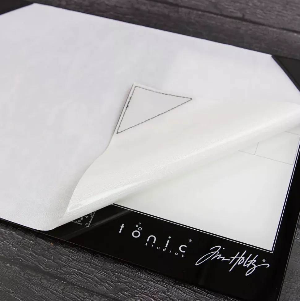 - Puedes usarlo solo directamente sobre tu superficie de trabajo, o con la Base de cristal Travel Glass Media Mat de Tim Holtz.