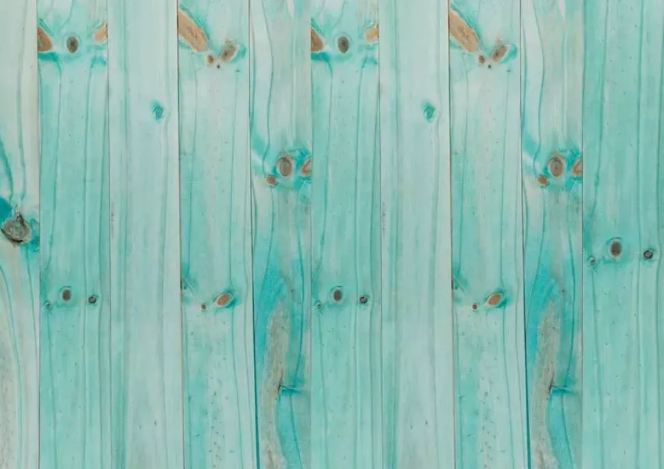 - Tela estampada con una textura de madera en color turquesa.