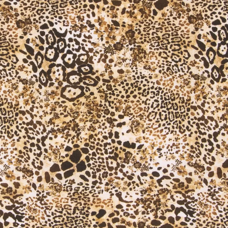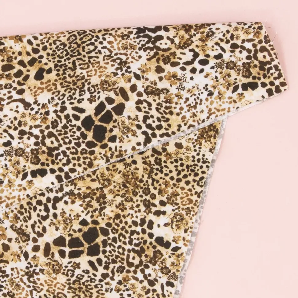 - Esta tela presenta un diseño animal print de leopardo.
