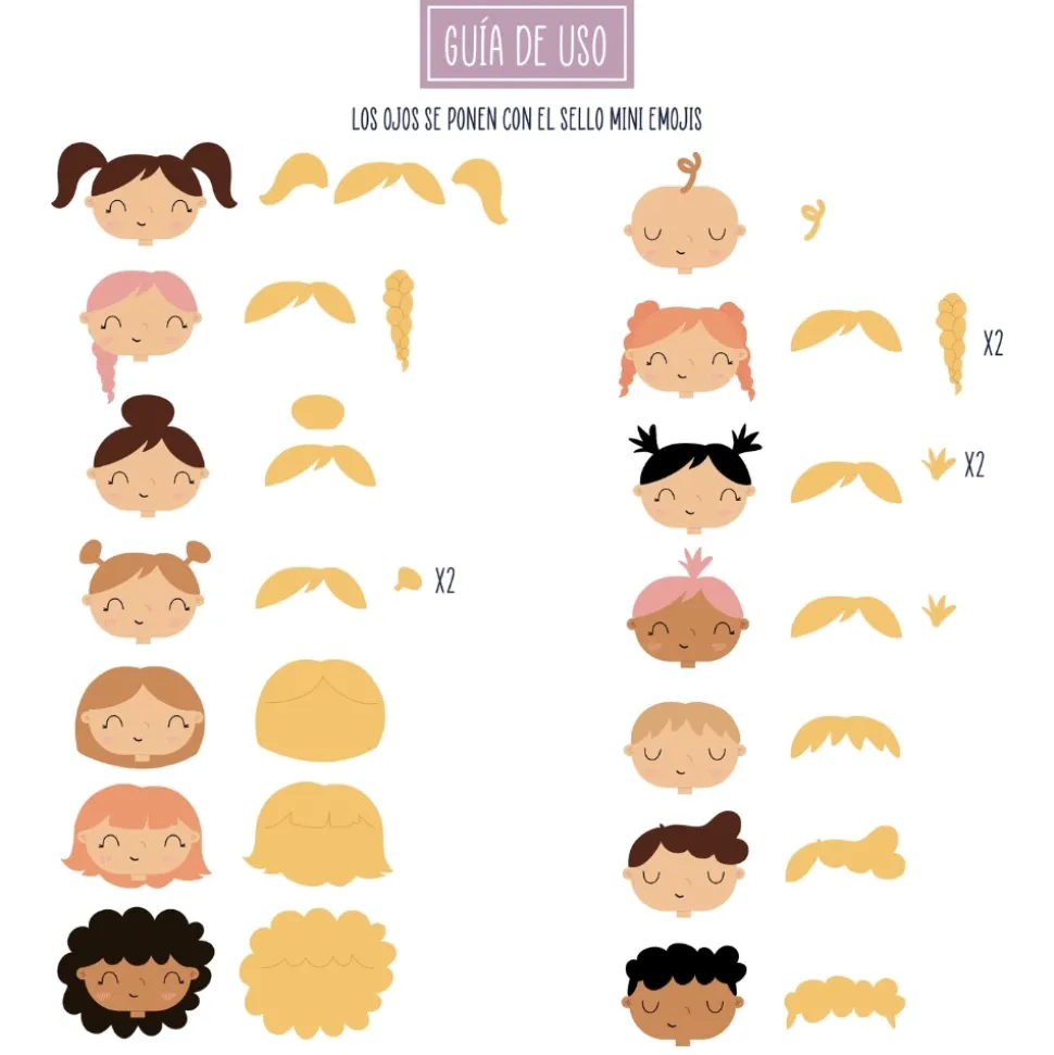 - Haz las caras de los personajes con el sello Mini Emojis de la misma colección.
