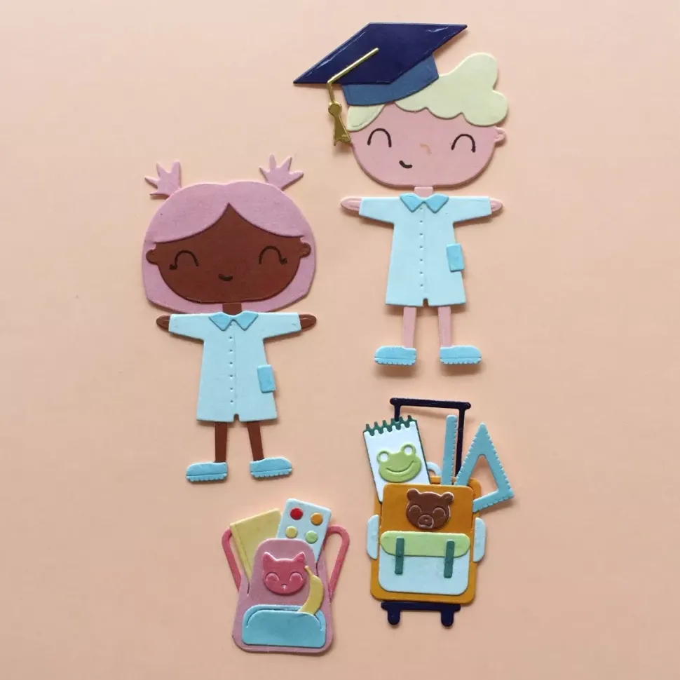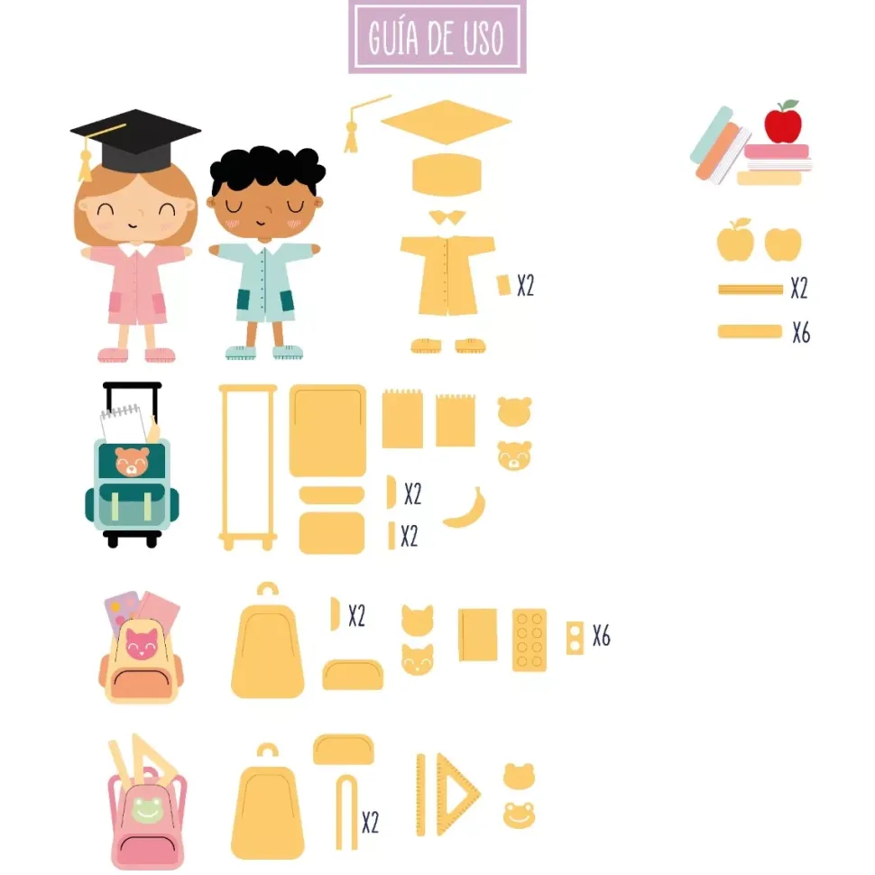 - Troquel para realizar complementos de colegio para los personajes de la colección